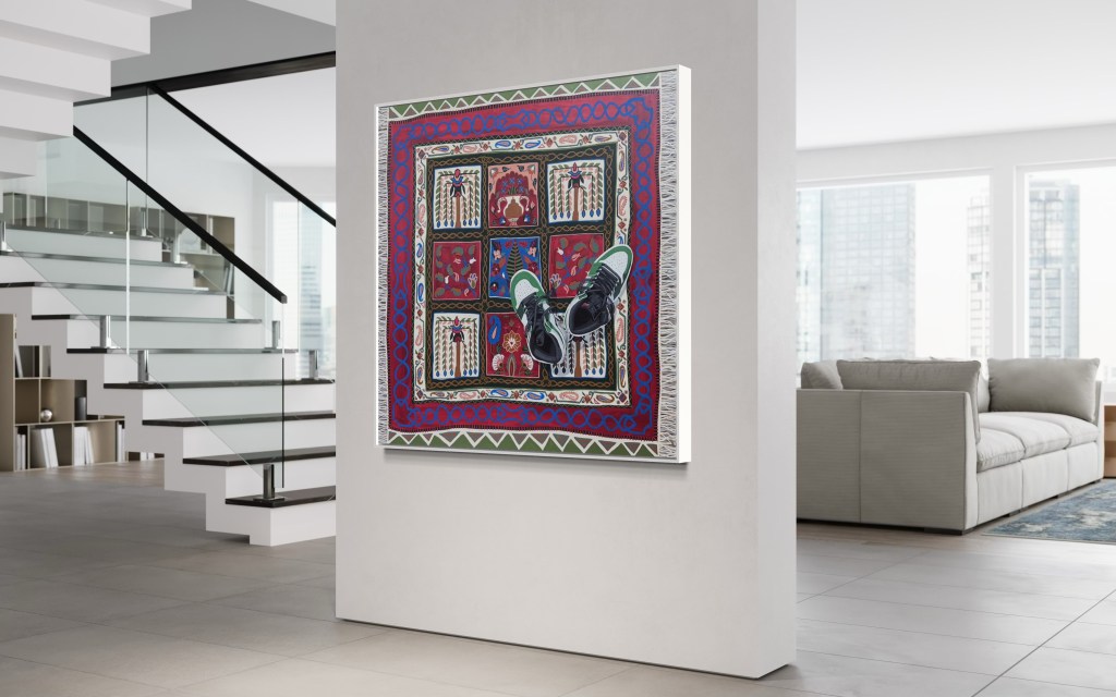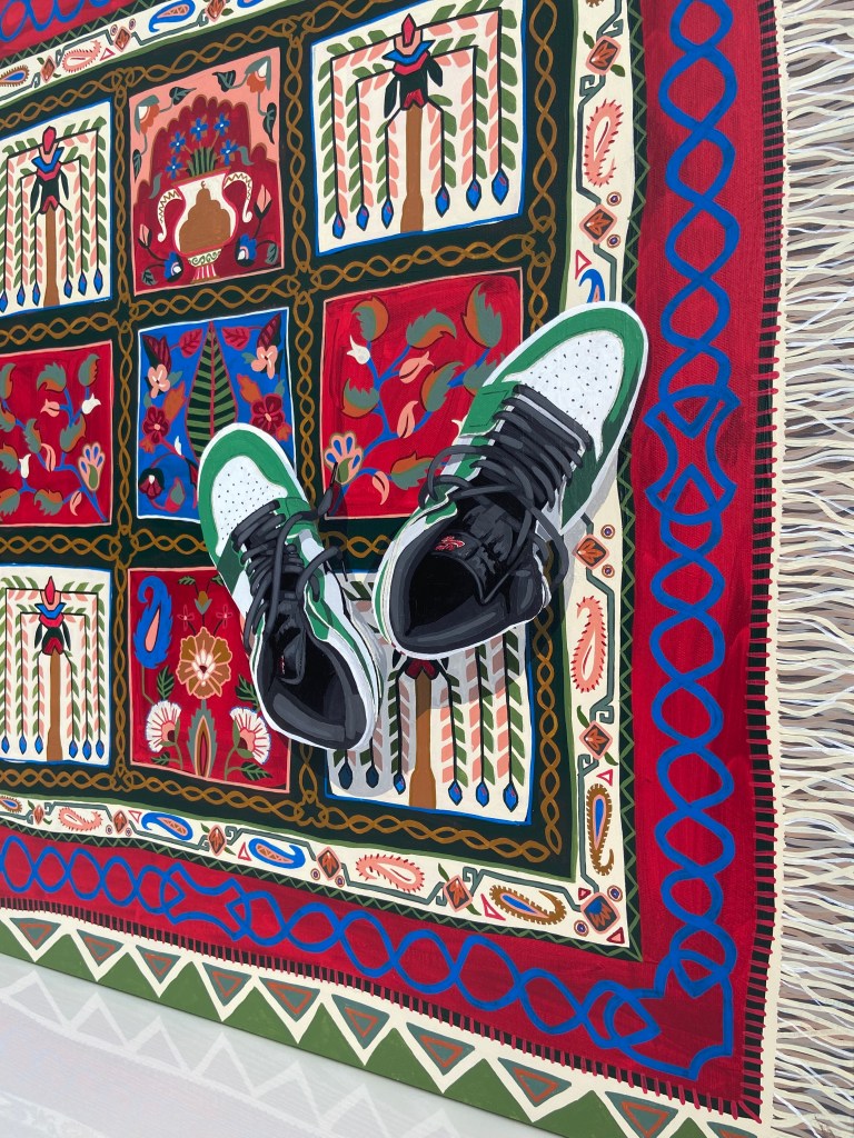 Eve’s work is a unique fusion of Islamic art’s geometric precision, the intricacies of floral patterns, and traditional textile motifs, blended seamlessly with contemporary still life elements. Each piece reflects her passion for cultural storytelling, as well as the harmonious interplay of Eastern and Western influences, mirroring her own multicultural journey.